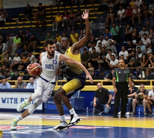 قدم لاعبو هوبس ربع اول رائع فاجأ به لاعبي الرياضي وتقدموا من البداية في ظل اداء دفاعي مميز، أجبر بطل لبنان على ارتكاب "التيرن اوفر" 7 مرات، وبروح قتالية عالية، وهو ما يٌكتب للاعبي المدرب جاد الحاج الذين انهوا الربع الاول (20 – 12)، ليعمد المدرب احمد فران الى الدفع باسماعيل احمد ووائل عرقجي لتعديل الامور والسير بفريقه على سكة الفوز الثاني في الدورة، ولكن الامر لم يكن سهلاً حيث واصل لاعبو هوبس اداءهم بتركيز عالٍ ومبادلة الفريق الاصفر التسجيل وانهاء الشوط الاول للقاء لصالحهم بفارق 5 نقاط (43 – 38)، مع دور بارز لعلي منصور وكريم زينون وحبيب عبد لله وغبريال صليبي على حساب زملائهم الاجانب.