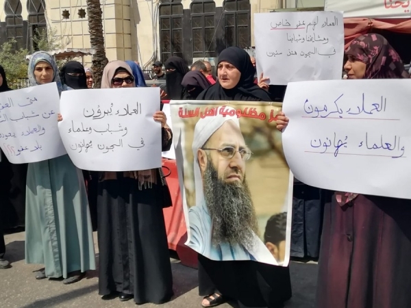 ورفع المعتصمون لافتات تطالب بالعفو العام عن جميع الموقوفين وتستنكر اي عفو يمكن ان يشمل عملاء العدو الصهيوني.