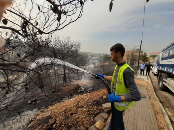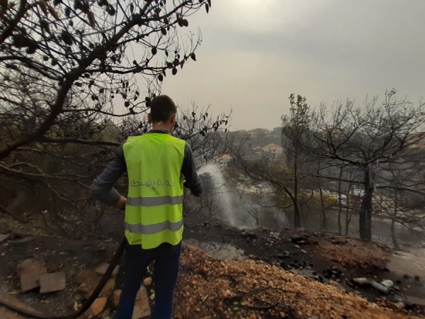 بالصور: بلدية بقسطا تساند في إخماد الحريق في المشرف