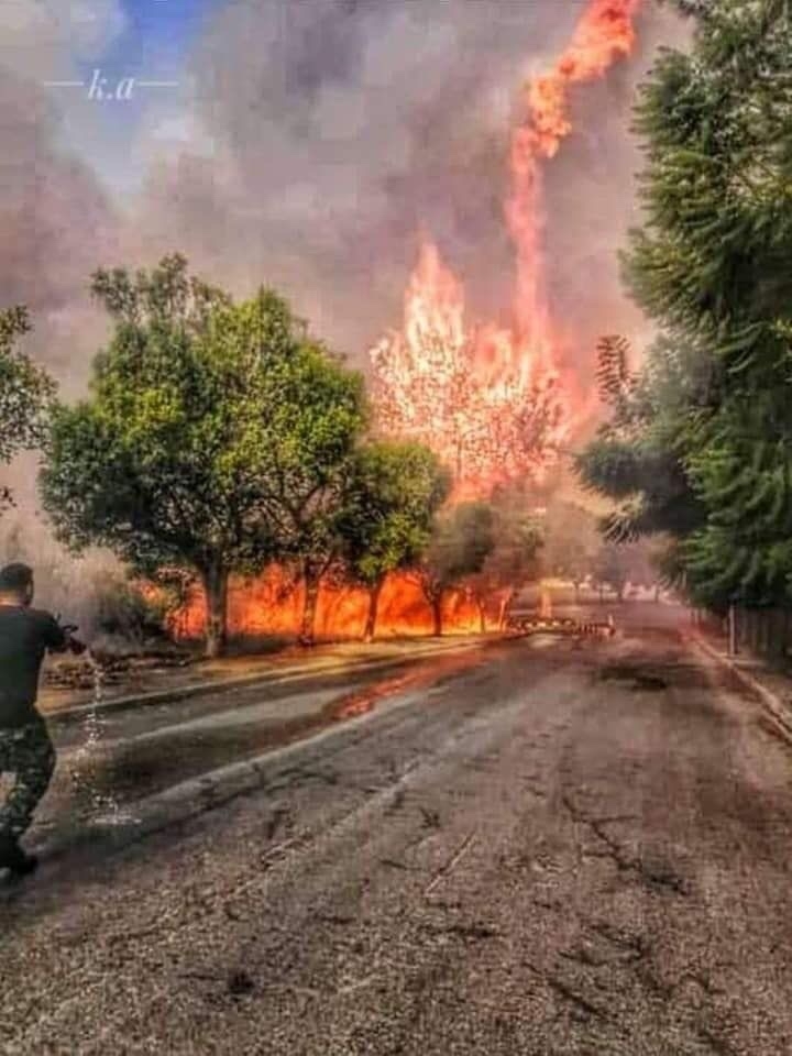 من اقوى الصور التي التقطت ويتبين في الصورة الرقيب المسلماني مهاجما النيران بكل ما اوتيه من قوة