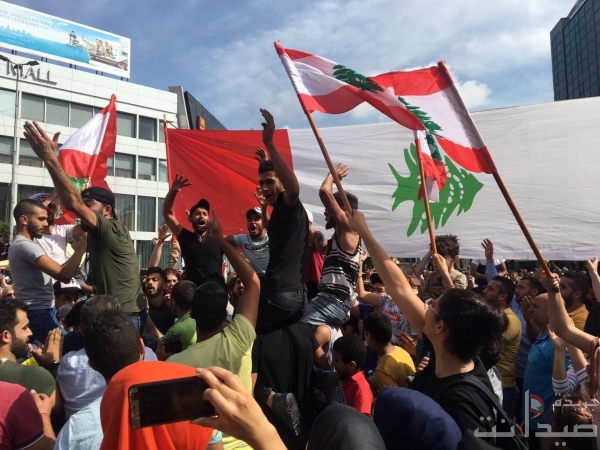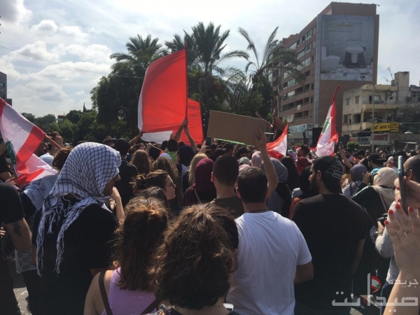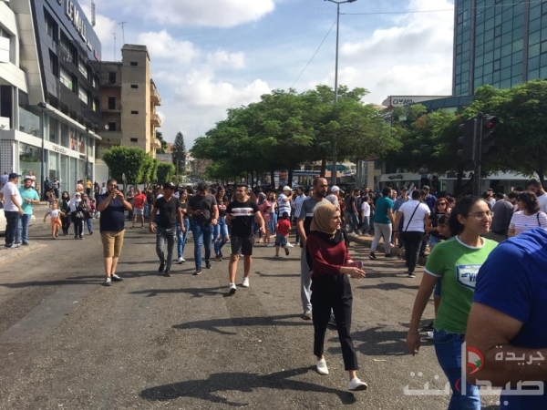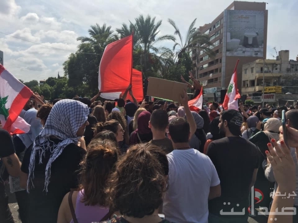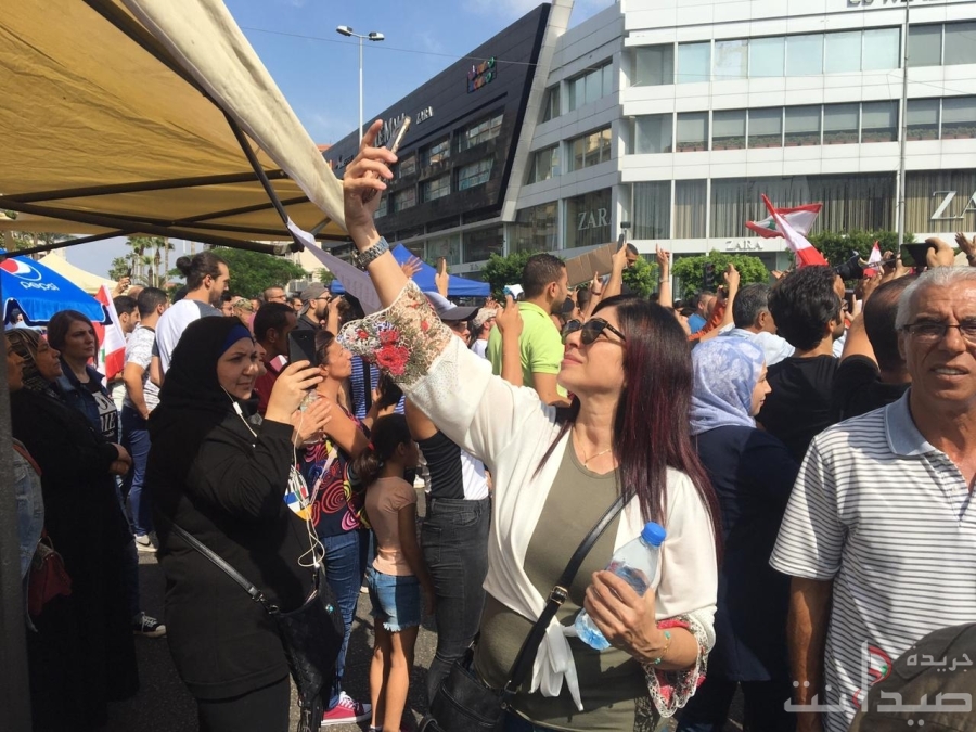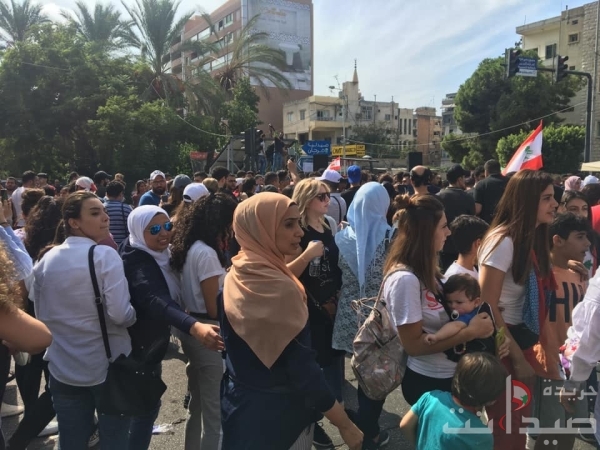 عند ظهر اليوم احتشد الناس بالاعتصام في مستديرة ايليا في صيدا ورفع الاعلام اللبنانية وادى بعضهم الرقصات والهتافات على وقع الاغاني اللبنانية ومنهم من بدأ باخذ صور السلفي.