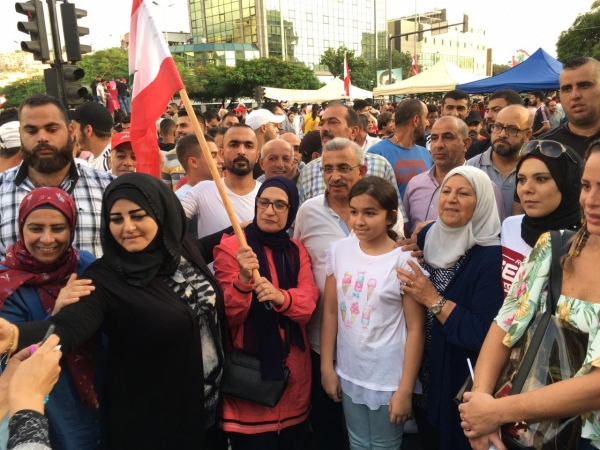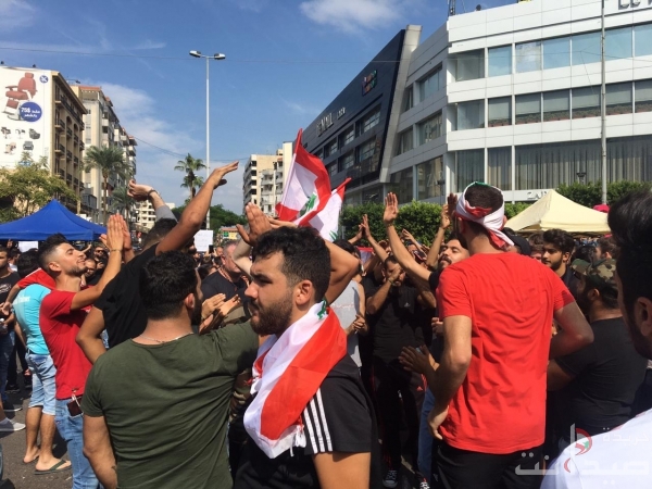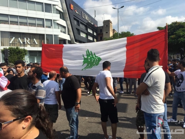 بالصورة المتظاهرون يحملون العلم اللبناني والتقاط سلفي في مستديرة ايليا