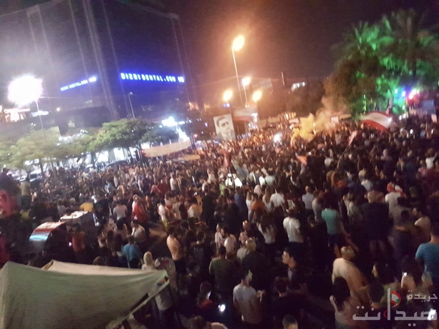 الان الاعتصامات مستمرة في مدينة صيدا والاعداد في ازدياد مستمر