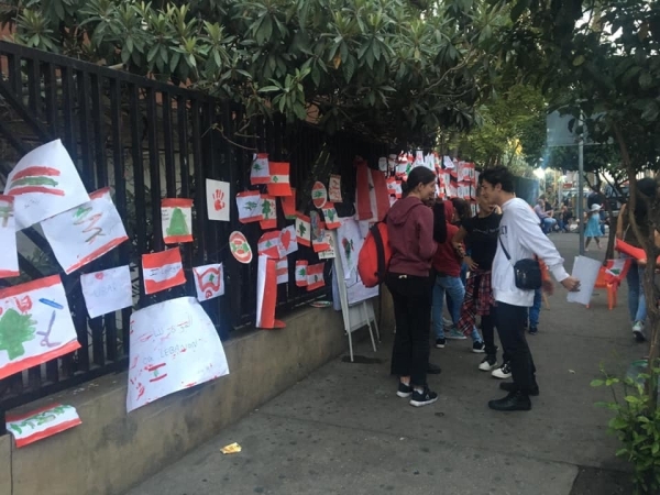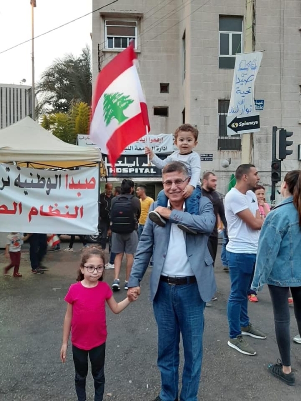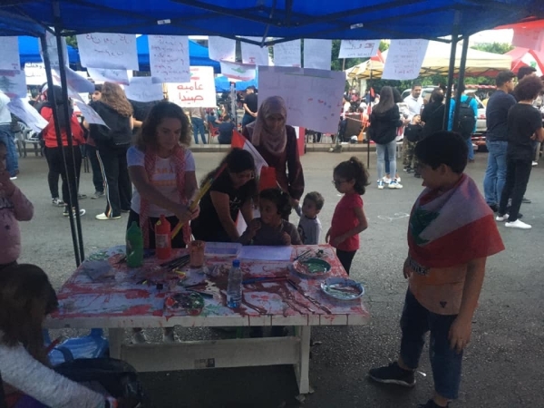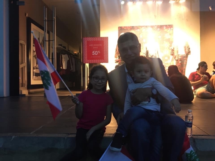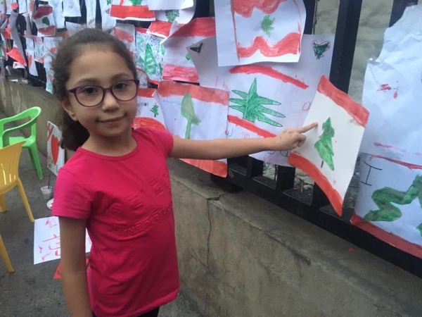 ومن هذه الحكايات ، انا و ابنتي و حفيدي حيث تجولنا بين الثوار ،من دون مهنة الصحافة، و رسمت ابنتي العلم اللبناني وعلقتها على احد الجدران و حفيدي رفع العلم اللبناني ورفرف به..