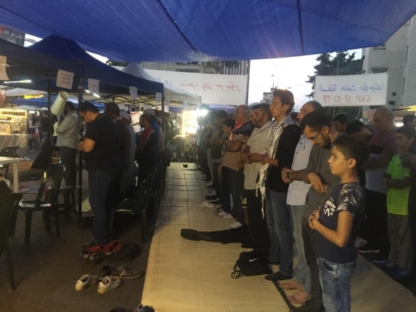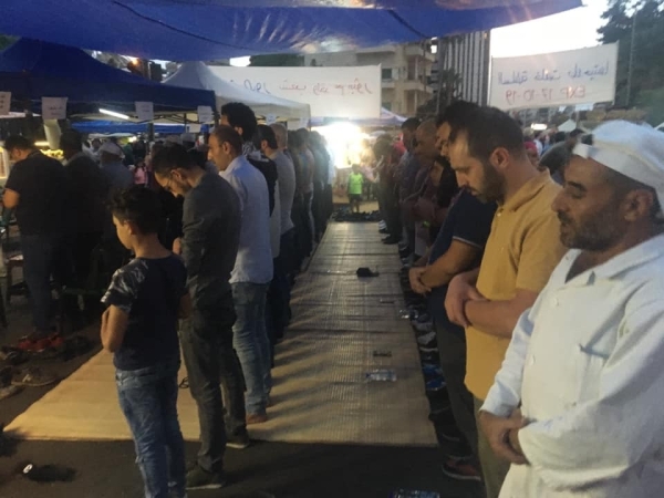 والشيء الملفت هو الجهة الشرقية حيث اقيمت صلاة المغرب جماعة.