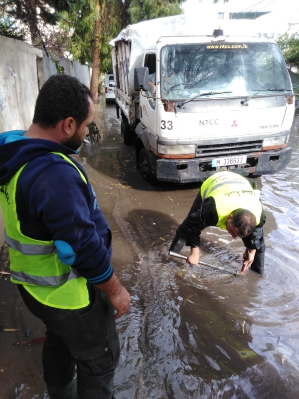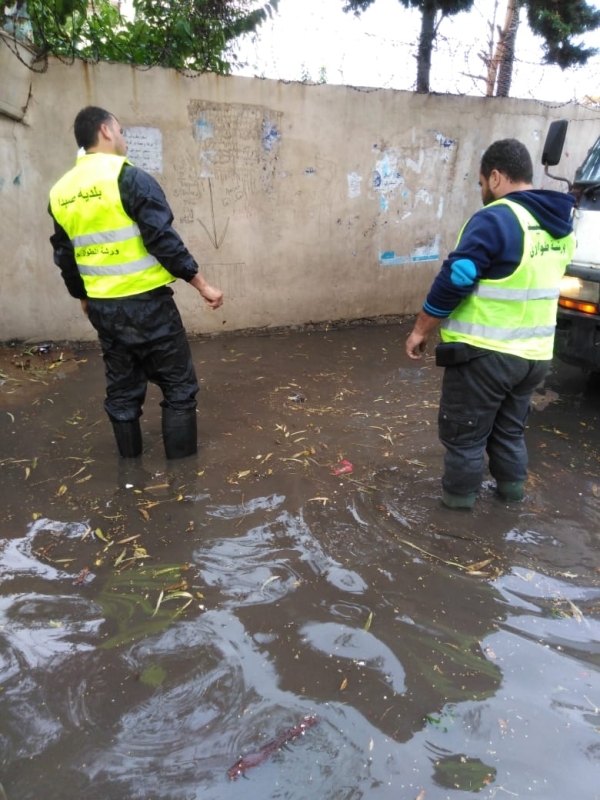 فرق طوارىء بلدية صيدا بحالة جهوزية و كثفت تدابيرها الوقائية لإستيعاب كميات مياه الأمطار الغزيرة وتصريفها