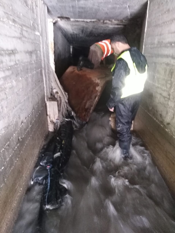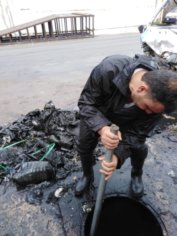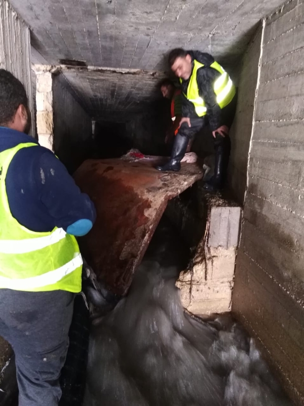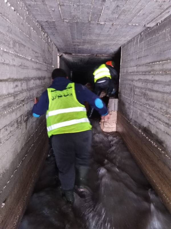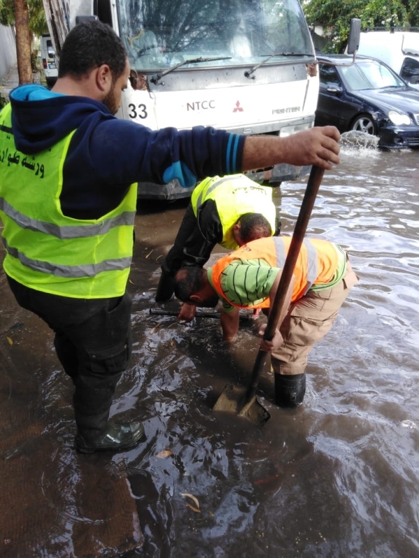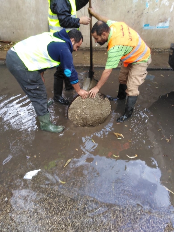 كما قامت فرق الطوارى بالتعاون مع فرق شركة NTCC بتنظيف وتعزيل الرواسب التي نقلتها سيول الأمطار إلى مختلف مصارف المياه، كما عالجت بعض حالات محدودة لإنسداد الأقنية بشكل عاجل وميداني .