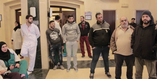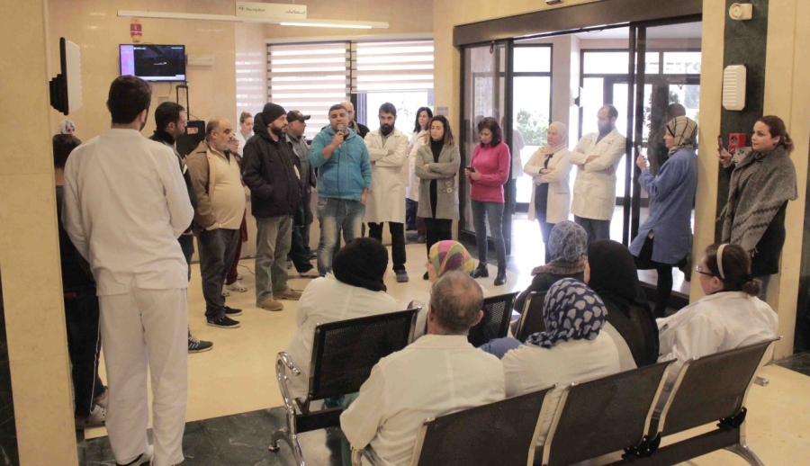 موظفو مستشفى صيدا الحكومي يعتصمون للمطالبة بالإفراج عن السلفة المالية للمستشفى، ومن أجل الحصول على رواتبهم
