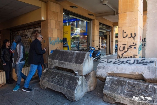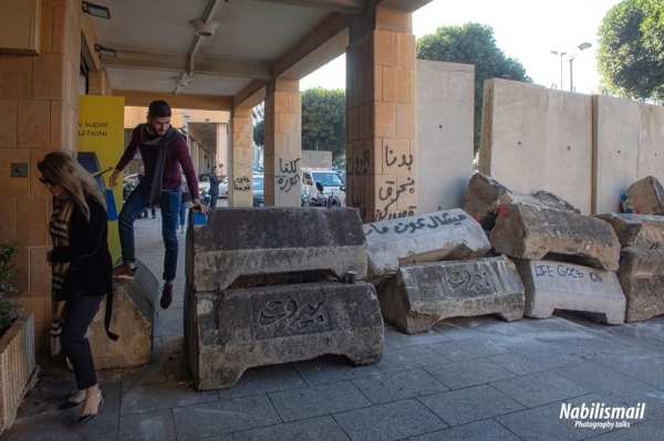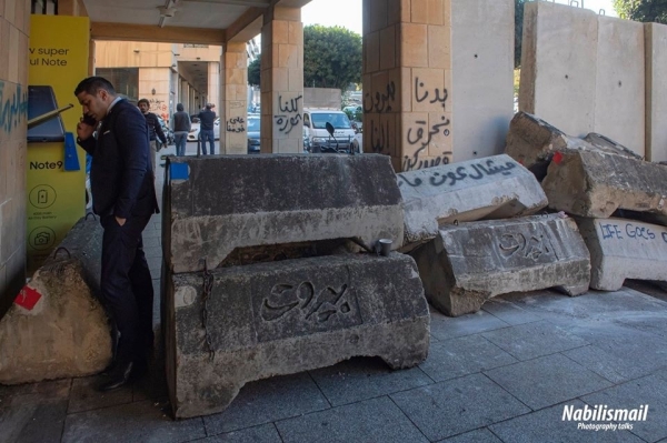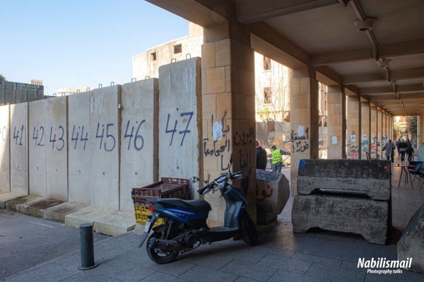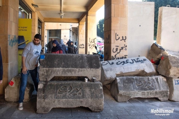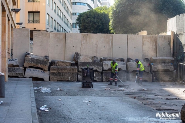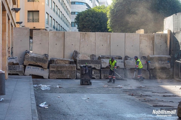 وقد علمت كاميرتي بأن فترة ما بعد ظهر اليوم سوف يتم وضع بوابة حديدية الى جانب الجدار عند مدخل مبنى المركزية تكون النافذة الوحيدة في المنطقة للدخول الى وسط بيروت حيث يعتصم الحراك الشعبي وينصب خيمه الاعتراضية في ساحتي الشهداء ورياض الصلح.