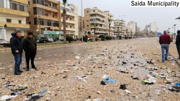 وكانت الشرطة البلدية وإطفائية بلدية صيدا قطعت الطريق بعيد منتصف الليل قبالة مطعم العربي وعمدت لتحويله إلى الأوتوستراد الشرقي ، في الوقت الذي قامت فيه الفرق بأعمال تنظيف ورفع المخلفات البحرية من الطريق.