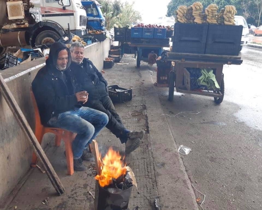 ومع موجة الصقيع التي ترافق العاصفة التي تضرب لبنان حالياً ، لا يجد عدد من الباعة الذين يتواجدون باستمرار تحت جسر سينيق - جنوبي صيدا ، أمامهم وسيلة لـ"الصمود" سوى بعض دفء عابر من نار يستوقدونها تحت "جسر الصقيع " ويلتفون حولها مستأنسين بوهجها وبما يدور بينهم من احاديث ، يكسرون بهما بعضا من جليد الوقت والطقس بين مغادرة زبون واستقبالهم لآخر ..