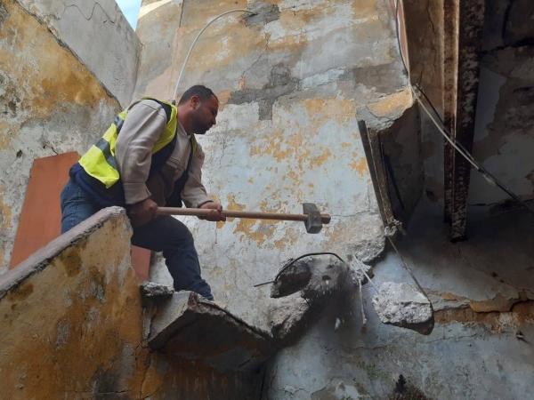 فمنذ ساعات الصباح بدأ عمال البلدية بورشة ترميم الأدراج المنهارة بإزالة القطع الاسمنتية التي نجمت عن سقوطها وتنظيف مكانها تمهيداً لإعادة بنائها من جديد .