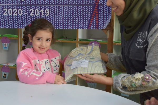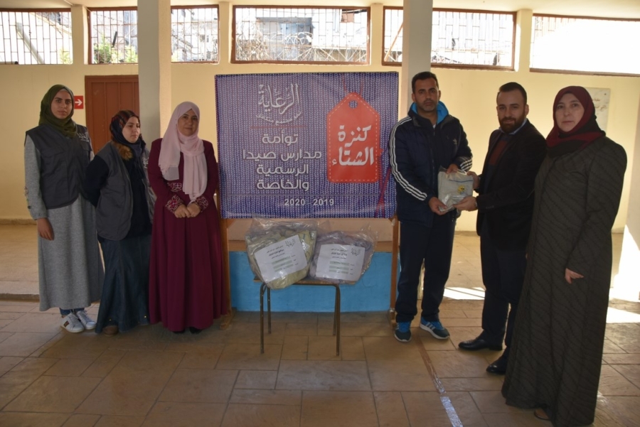 الرعاية توزع كنزة الشتاء على طلاب مدرسة عين الحلوة الإبتدائية الرسمية