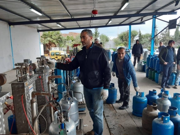 في احد مراكز توزيع الغاز في المدينة سجل ازدحام بالمواطنين واصحاب نقاط البيع لتعبئة عبوات الغاز ، حيث يتم تسليمها بسعر 14700 ليرة علماً ان التعبئة تقتصر على 10 كلغ لكل عبوة كون الدولة علقت العمل بتعبئة الـ12.5 كلغ منذ اكثر من سنة .