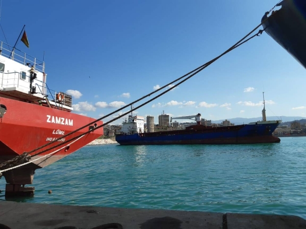 وعلى مقربة من الباخرة " دالاس " كان طاقم الباخرة التجارية " زمزم " التي وصلت الى صيدا اوائل كانون الثاني الجاري يستعد للمغادرة بعدما احتجزتها الأنواء البحرية طيلة أكثر من عشرة ايام .