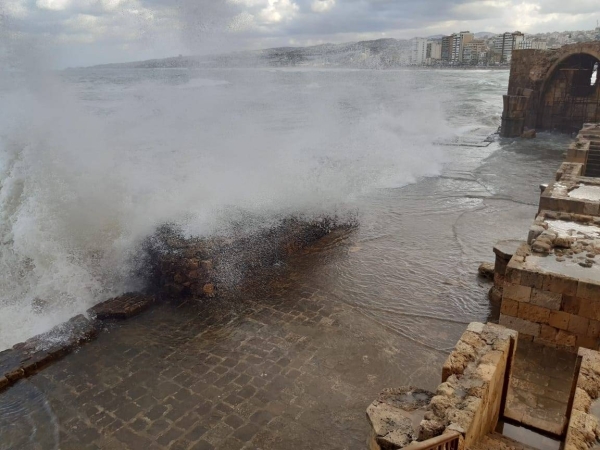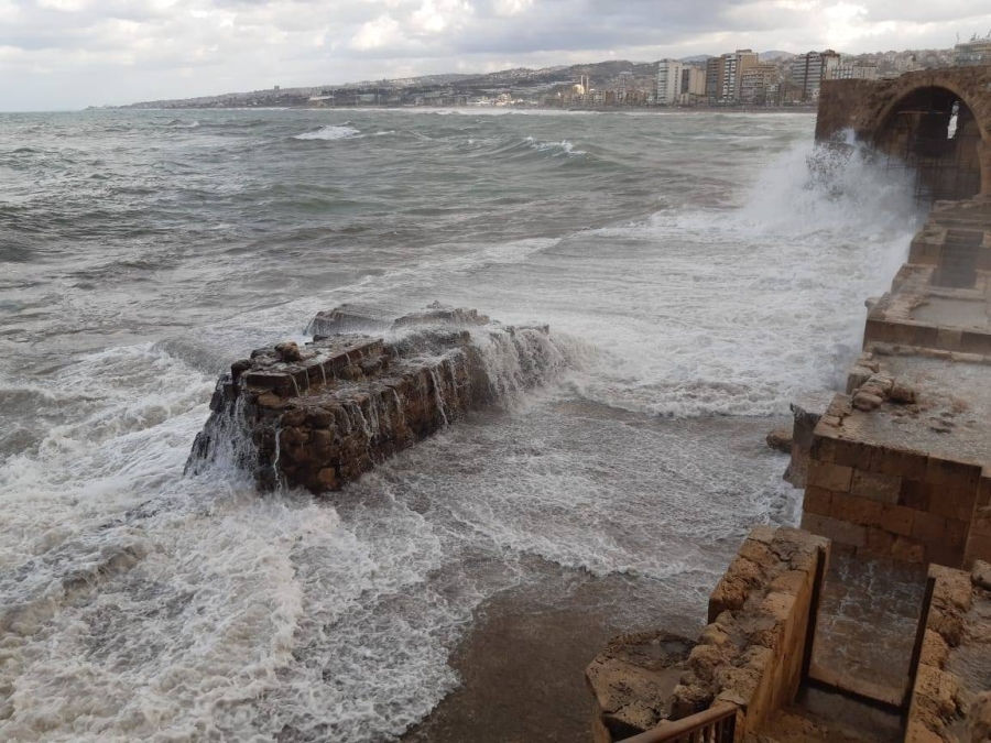 أمواج عاتية" اجتاحت قلعة صيدا واقتحمت رصيف مرفئها الجديد !