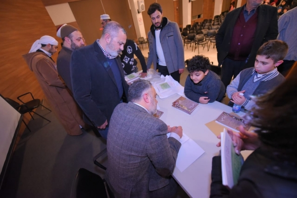 وفي الختام وقع الشيخ عبد الرحمن عثمان حبلي كتابه عن سيرة الشيخ وأهداه للحضور.