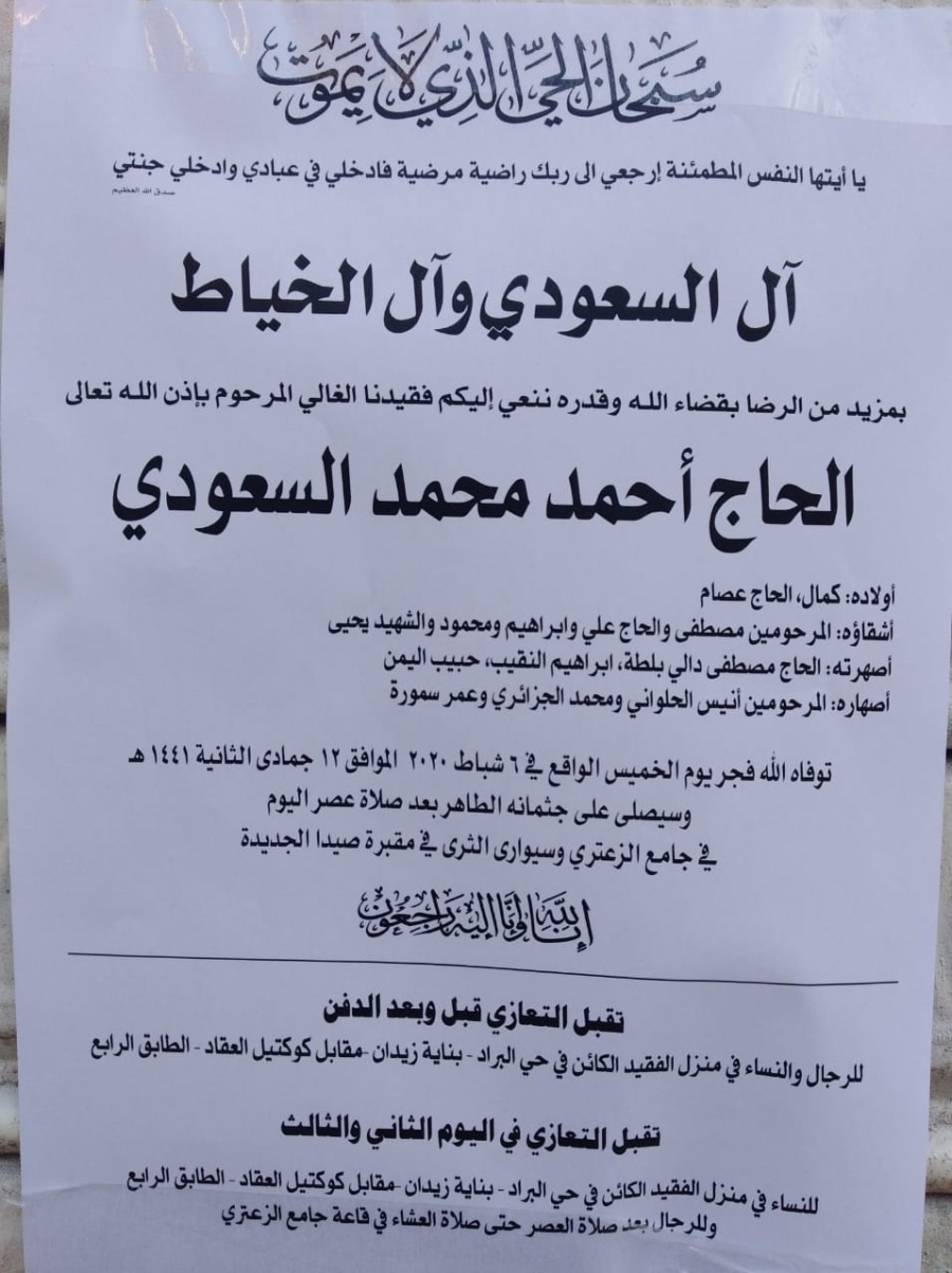 وفاة الحاج أحمد محمد السعودي