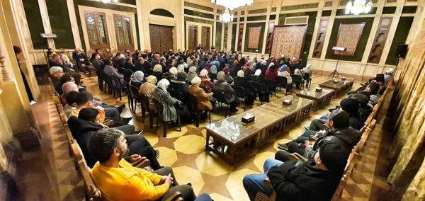تقدم الحضور: سماحة مفتي صيدا وأقضيتها الشيخ سليم سوسان، رئيس مجلس إدارة المجمع الحاج علي الشريف، إمام وخطيب المسجد الشيخ الدكتور محمود سمهون، وعدد من معلمي الدورة القرآنية في المسجد، ورواد المسجد.