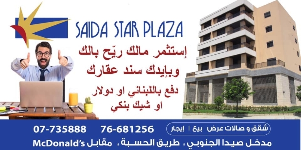 في ظل الازمة المالية والنقدية الحالية التي تعصف في البلاد حيث اصبح من الصعوبة بمكان سحب المودعين لاموالهم من البنوك، تقدم شركة صيدا ستار بلازا خدمة لزبائنها عبر بيعهم الشقق والعقارات عن طريق الشيكات المصرفية مع توفير السند الاخضر مباشرة. وهذه العملية تحفظ حق المودعين عبر استثمارهم في اموالهم في العقارات وتسهام في اعادة تدوير النقد في السوق من جديد.