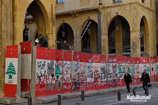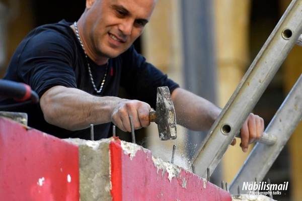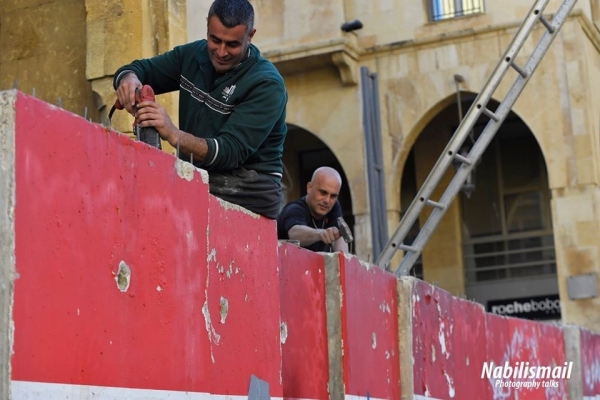 رصدت كاميرتي بعد ظهر اليوم الثلاثاء عملية "غرز" قطع صغيرة سميكة من فولاذ الحديد بطول يتغدى 10 سم كمسامير مثبتة بطريقة محكمة على كامل سطح المكعبات الأسمنتية للجدار الذي تحمي السلطة نفسها خلفه ثم تم دهنه بمادة من الشحم بشكل كثيف عند مدخل مجلس النواب قبالة أسواق بيروت. وذلك لمنع المعتصمين من تسلقه. ويبدو أن السلطة بفعلتها هذه تريد وبشكل نهائي منع المتظاهرين من التجرؤ وتسلق الجدار اذا لم يمنعهم الشحم ستمزق أيديهم المسامير الفولاذية.