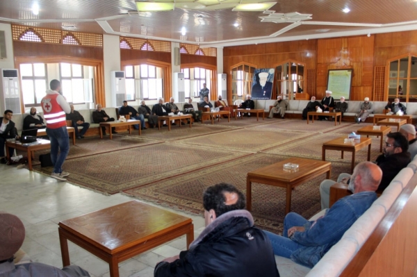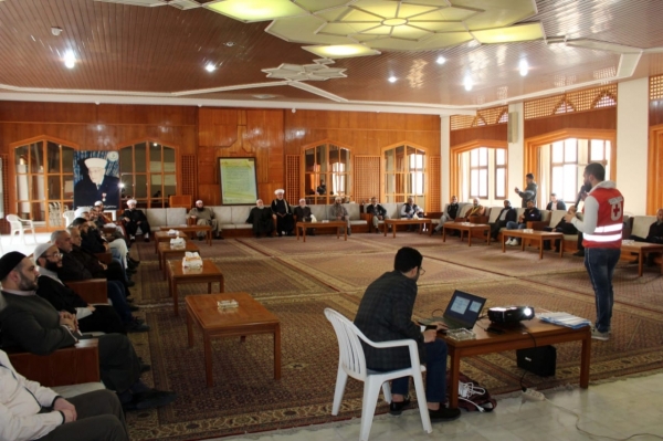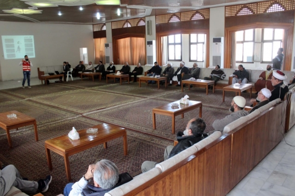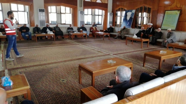 وقام مسعف مدرب من وحدة ادارة الحد من مخاطر الكوارث في الصليب الأحمر بتقديم شرح حول "فيروس كورونا المستجد" ومنشأه ومراحل تطوره وطرق انتقاله وما صدر من توصيات وإرشادات عن منظمة الصحة العالمية واليونيسف ووزارة الصحة اللبنانية حول التدابير الوقائية منه ، والاجراءات الواجب اتخاذها في المساجد من قبل القائمين عليها او من قبل المصلين للوقاية والحفاظ على السلامة العامة فيها ومن قبل الموظفين في دار الأوقاف، والأساليب الصحية للتعقيم .