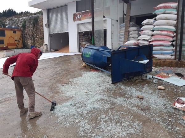 بمزيج من الغصة والحسرة على جنى العمر ، ينظر محمد صعب الى ما خلفته " عاصفة التنين " من أضرار جسيمة في عشرات الخيم البلاستيكية المخصصة لزراعة الفريز والبندورة في بلدة كوثرية السياد حيث اقتعلتها الرياح العاتية وأطاحت بما فيها من مشاتل زراعية .