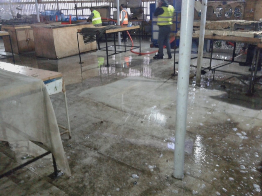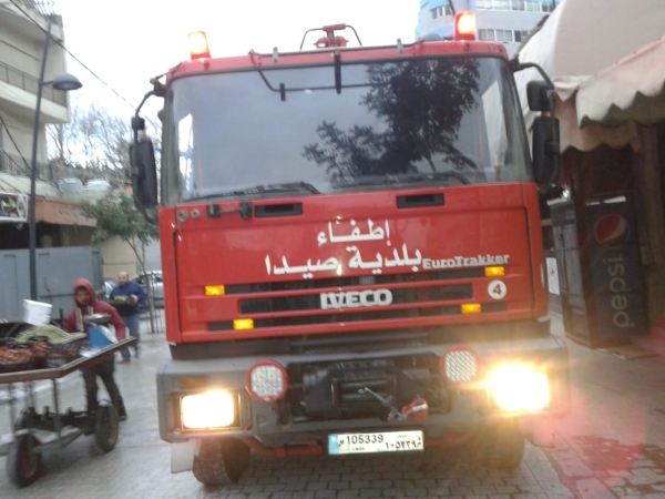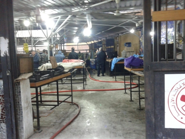 عمل عناصر سرية الاطفاء بالتعاون مع عمال البلدية على شطف سوق الخضرة القديم في شارع فخر الدين