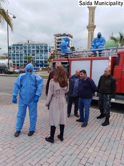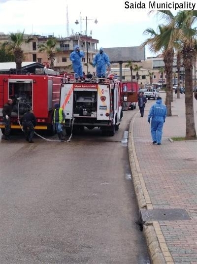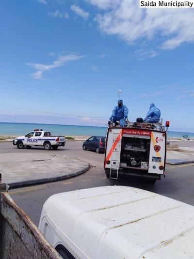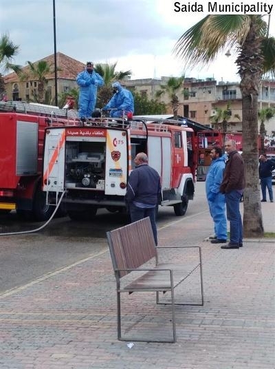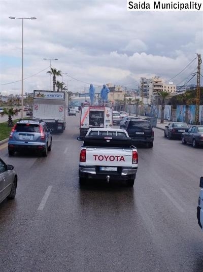 بتوجيهات من رئيس بلدية صيدا المهندس محمد السعودي، تقوم سيارات تابعة لفوج إطفاء بلدية صيدا بتعقيم شوارع المدينة للوقاية من فيروس كورونا بالتعاون مع فرق طوراىء البلدية وبمواكبة من شرطة البلدية .