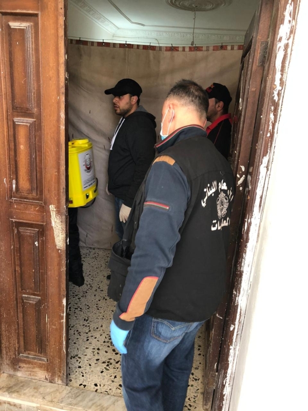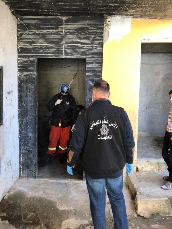 "في اطار اجراءات الوقاية من تفشي فيروس كورونا قامت دوريات من المديرية العامة للأمن العام - شعبة الجنوب في دائرة الأمن القومي - بالاشراف على تعقيم مخيمان للنازحين السوريين في قضاء صيدا وهما مجمع النداف ومجمع الإيمان بالتعاون مع الجمعية الطبية الاسلامية واللذان يضمان حوالي ٥٧ عائلة وحوالي ٢٣٠ فرد.
