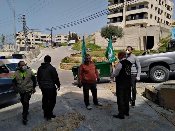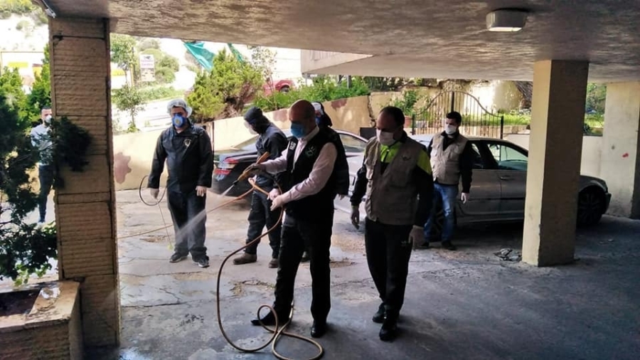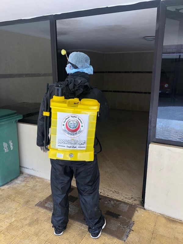 باشرت الجماعة الإسلامية في صيدا بالتعاون مع الجمعية الطبية الاسلامية وبلدية بقسطا صباح يوم الاثنين ٢٣- ٣- ٢٠٢٠ بحملة تعقيم لمداخل المباني السكنية وجوانب الطرقات بالاضافة الى المحال التجارية في منطقة الشرحبيل.
