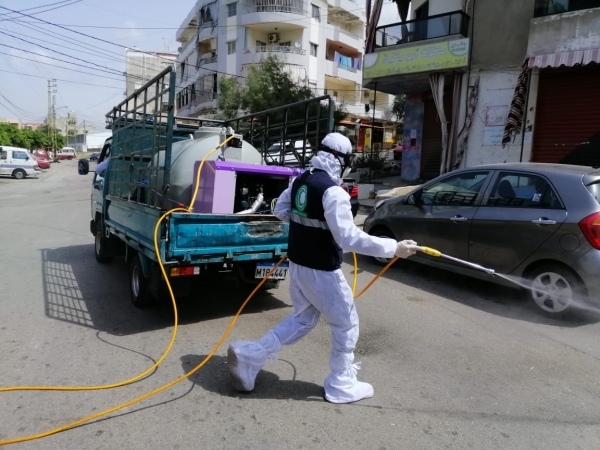 الهلال الأخضر رش و تعقيم منطقة وادي الزينة في وادي الزينة