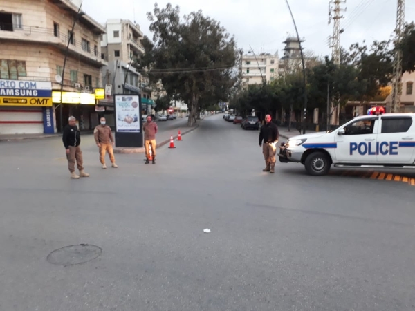 حواجز لشرطة بلدية صيدا لاخلاء الشوارع من المواطنين تنفيذا لقرار وزارة الدفاع
