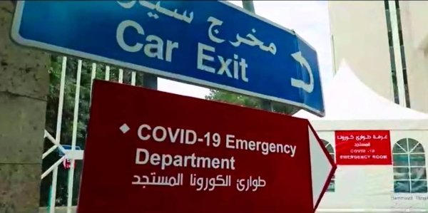 وخصصت ادارة المستشفى مدخلاً خاصاً بالمرضى الذين يعانون من أعراض تنفسية منفصلاً عن المدخل المخصص للمرضى العاديين وتم تقسيم المستشفى الى قسمين " أحمر لكل ما له علاقة بالمرضى الذين يعانون أعراضاً تنفسية ، وأخضر للحالات المرضية العادية بما فيها الفحوصات المخبرية والعمليات الجراحية الملحة ".