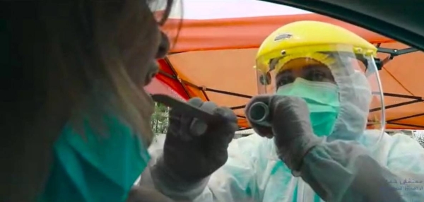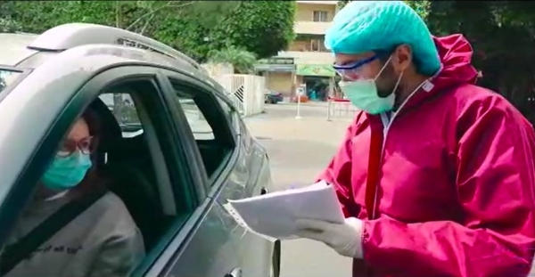 اذا كنت ممن يعانون من اعراض شبيهة بأعراض فيروس كورونا وتريد التأكد والاطمئنان ، وبمجرد وصولك الى مداخل المستشفى تقودك لافتات توجيهية حمراء الى" المنطقة الحمراء" عبر المدخل رقم 2 الذي يؤدي الى العيادات الجاهزة في خيم نصبت في قسم من الباحة الخارجية للمستشفى او الى قسم الطوراىء الخاص بمرضى الذين يأنون من عواض الكورونا ، وما عليك سوى ان تتبع ان الارشادات التي تحملها هذه اللافتات ، فتصل أولاً الى خيمة الفرز الطبية ليقوم الممرض المختص بتقييم الحالة والتأكد ان حالتك مستقرة وعليك اكمال الطريق لأخذ الفحص في العيادات الجاهزة ، ثم تستقبلك في "الخيمة رقم 1 " ممرضة تقوم بتعبئة المعلومات الشخصية والبيانات الطبية لك وقياس الحرارة، ومن ثم الى "الخيمة رقم 2 " حيث تخضع للفحص الأولي من قبل الطبيب المختص ليقرر بعدها نوع الفصح المخبري الأفضل لحالتك . وبعد ذلك يقوم الممرض في الخيمة رقم 3 وهي خيمة المختبر بأخذ العينة منك عبر نافذة السيارة ، وتحصل في " الخيمة رقم 4 " على الارشادات الصحية والوصفة الطبية ، ثم تغادر المستشفى عبر "الخيمة رقم 5 " بعد تسديد الأتعاب الطبية والمخبرية .ويتم التواصل مع المريض بعد 24 ساعة لإبلاغه بنتيحة الفحص الذي خضع له وما يجب اتخاذه من اجراءات بحسب النتيجة.