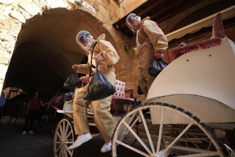 ب صيدا مستعينة حنطور لإيصال المساعدات إلى الأزقة حيث لا تصل السيارات.