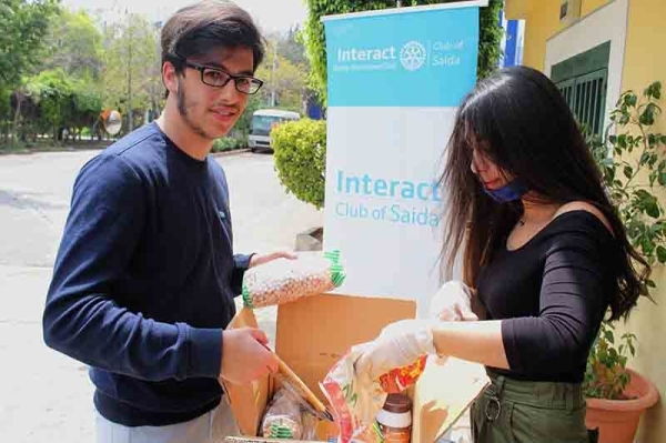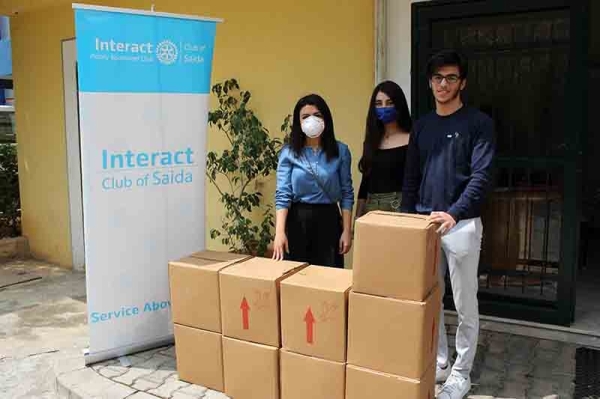 فقد قام شباب وشابات " انترأكت صيدا" بتخصيص مبلغ من المال من ريع نشاط نفذوه قبل الأزمة ، بتقديم حصص مونة غذائية لعائلات عدد من تلامذة مدرسة أجيال صيدا التابعة لـ"دار رعاية اليتيم " والذين ترعاهم الجمعية تحتوي كل حصة منها على 17 نوعاً من المواد الغذائية . وجرى تسليم هذه الحصص للقيمين على الجمعية من قبل رئيس " انترأكت –صيدا" رام عزام والمشرفة على النادي من قبل الروتاري الآنسة سالي الزعتري حيث جرى توزيعها على هذه العائلات عبر تسليمها لبعضهم مباشرة في مقر الجمعية او عبر تأمينها الى بعضهم الآخر في بيوتهم .
