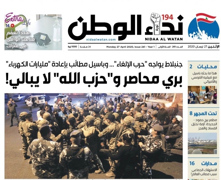 وإذ رأى "تيار المستقبل" في كلام باسيل "ما يثير السخرية لناحية دعوته اللبنانيين وأهل السياسة والاقتصاد الى اتخاذه مثالاً يجب الاقتداء به في الشفافية والنزاهة وحسن السيرة والأداء" معتبراً أنّ في تطابق عبارات "الخطاب الانتقامي" لكل من دياب وباسيل ما يعزز الانطباع بأنّ عون مصمم على "اقتلاع الحريرية" وأنّ هناك "غرفة واحدة تنشط على خط الانقلاب الجاري على صورة غرفة العمليات التي انشئت في بعبدا العام 1998"، استرعى الانتباه مساءً تشديد رئيس "الحزب التقدمي الاشتراكي" على كون "العماد عون استأنف سياسة الإلغاء التي بدأها عام 1988"، مذكراً عبر قناة "العربية" بأنّ "التيار الوطني الحر كان ميليشيا في لبنان". وبينما شدد على أنّ رئيس الحكومة حسان دياب هو فعلياً "لا شيء إنما "حزب الله" والتيار الوطني يحركان الحكومة اللبنانية"، لوحظ أنّ جنبلاط رفع جهوزيته إلى مستوى التصدي لـ"حزب الله" من خلال قوله: "لن نقبل بإلغائنا من قبل "حزب الله" أو غيره"، مؤكداً أنّ "لبنان لا يسيطر على حدوده ومطاره وموانئه وسنقاوم سلمياً وديموقراطياً".
