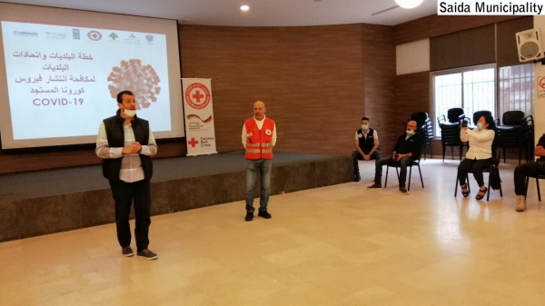 إشارة إلى أنه تم إعداد خطة البلديات واتحادات البلديات لمواجهة فيروس كورونا المستجد من قبل وحدة إدارة مخاطر الكوارث لدى رئاسة مجلس الوزراء والصليب الأحمر اللبناني بالتعاون مع المديرية العامة للمجالس المحلية والبلديات في وزارة الداخلية والبلديات ووزارة الصحة العامة ومنظمة اليونيسف ومفوضية الأمم المتحدة لشؤون اللاجئين.