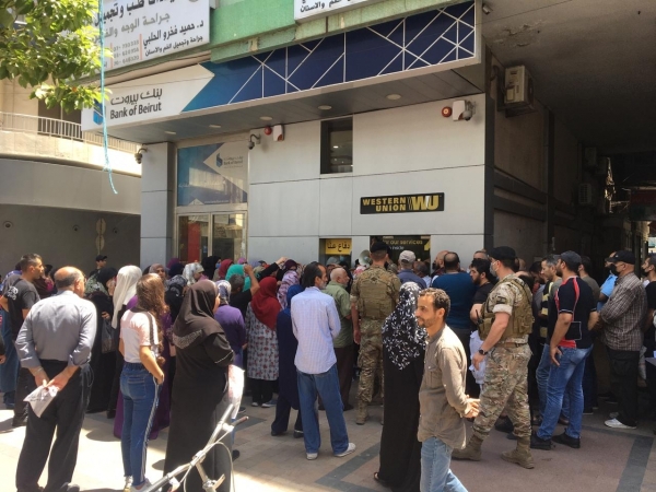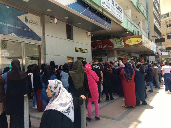 ازدحام أمام احدى مؤسسات تحويل الأموال في صيدا...وكان من الافضل الالتزام بطريقة بلدية صيدا في توزيع المساعدات