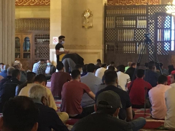 بالصور صلاة عيد الفطر في مسجد الحريري بصيدا في ظل تباعد المصلين من فيروس كورونا