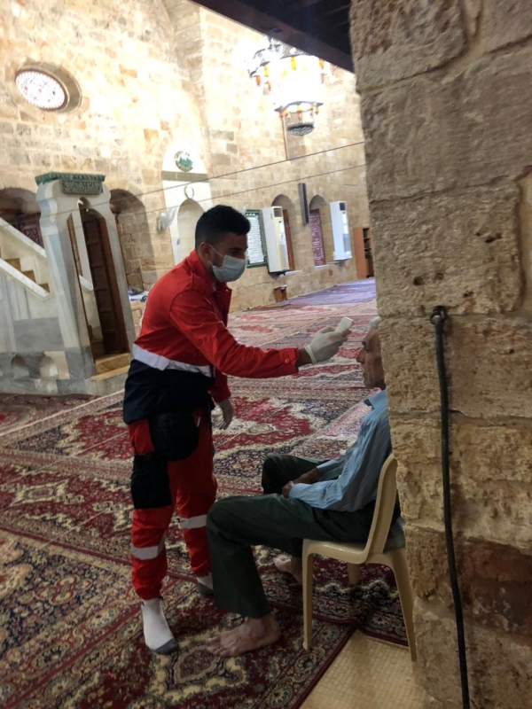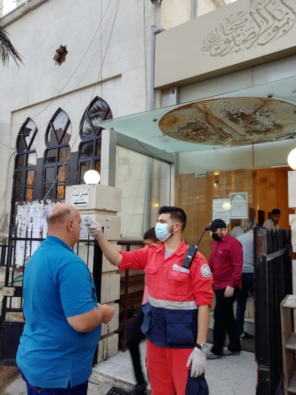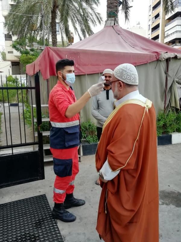 وقد اتخذت الاجراءات الوقائية الضروروية من وباء كورونا في المسجد؛ من تباعد، ولبس الكمامات، وأخذ الحرارة عند باب المسجد من قبل متطوعي فوج الانقاذ الشعبي التابع لمؤسسة الشهيد معروف سعد.