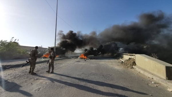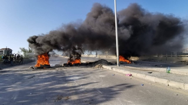 قطع الطريق بالاطارات المشتعلة على اتوستراد مدخل صيدا الجنوبي في منطقة سينيق