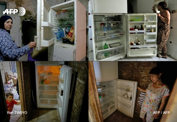 وخلال الأيام الماضية، التقط مصورو وكالة فرانس برس صوراً صادمة لبرادات شبه فارغة داخل منازل في مدن رئيسية هي بيروت وجونية وجبيل وطرابلس شمالاً وصيدا جنوباً، تأثر أصحابها بتداعيات الأزمة وبتدهور الليرة. فمن كان راتبه يعادل 700 دولار الصيف الماضي على سبيل المثال، بات اليوم بالكاد يعادل مئتي دولار.