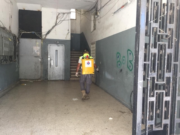 ٤- حملات تعقيم لدور العبادة والمساجد وأماكن محددة لبعض المحجورين في بلدات حارة صيدا والغازية وحومين التحتا واركي ورومين وعدد من أحياء مدينة صيدا نفذتها فرق من متطوعي الدفاع المدني في الهيئة الصحية الإسلامية في منطقة صيدا.