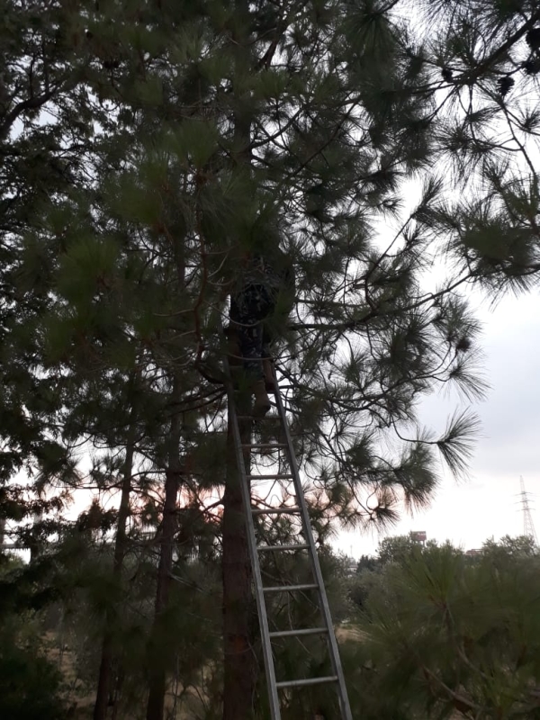 إنقاذ قطة من على شجرة صنوبر في مجدلين