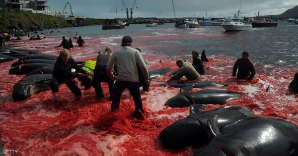 بالفيديو و صور مذبحة في البحر.. عودة موسم "نحر الحيتان"