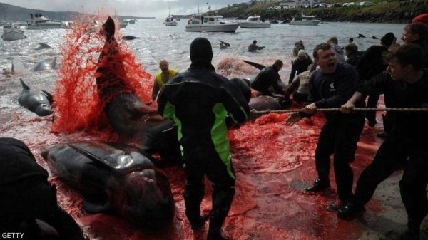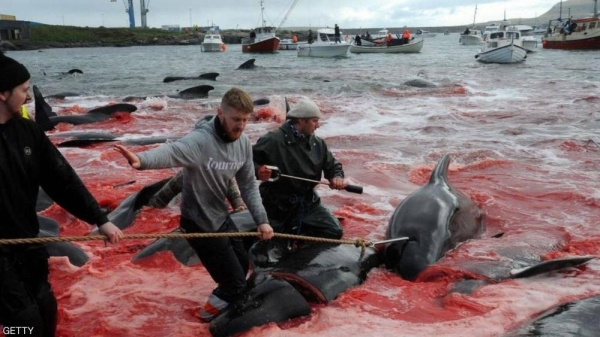 واصطاد الصيادون حوالي 250 حوتا طيارا و35 دولفينا، قرب قرية تقع أقصى جنوب الأرخبيل، وفق ما ذكرت شبكة "يورو نيوز" الإخبارية.