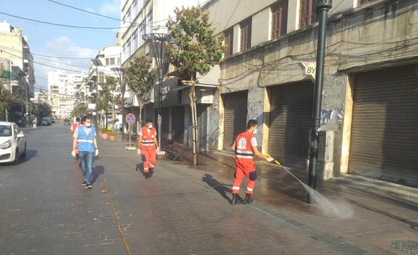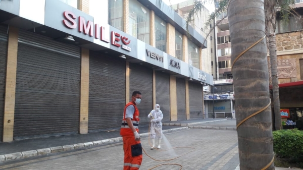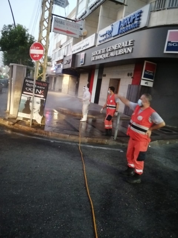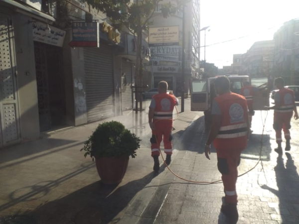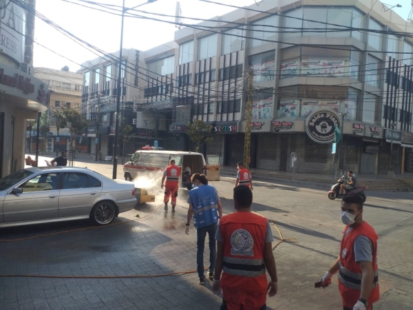 بالصور جمعية الانقاذ الشعبي تعقيم السوق التجاري في صيدا