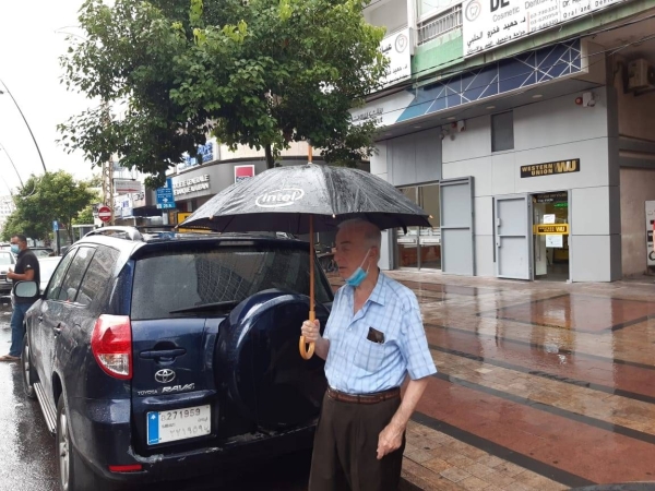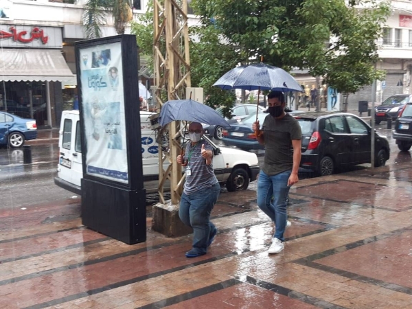 أمطار آب دفعت ببعض المواطنين الى " استدعاء " مظلاتهم الى الخدمة وتنقلوا بها وسط المدينة اتقاء من المطر ، وهم يرتدون الكمامات وقاية من "كورونا ".. بينما فضل آخرون التنقل تحت المطر بعدما استبشروا في "شتوة عز الصيف" خيراً ورحمةً من السماء .